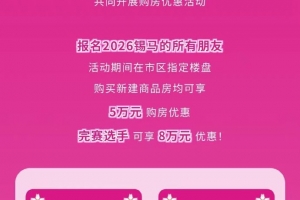 3月22日,2026无锡马拉松将鸣枪开跑。据无锡体育,报名2026无锡马拉松的所有朋友,活动期间在市区指定楼盘购买新建商品房均可享5万元购房优惠,完赛选手可享8万元购房优惠。
