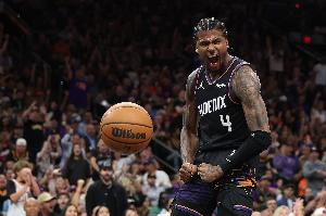 体育资讯4月18日讯 NBA附加赛,太阳上半场以50-45领先勇士。