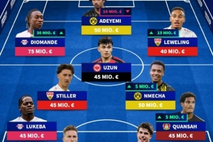 中场:斯蒂勒(斯图加特,4500万欧)、恩梅查(多特,5000万欧)、乌尊(法兰克福,4500万欧)